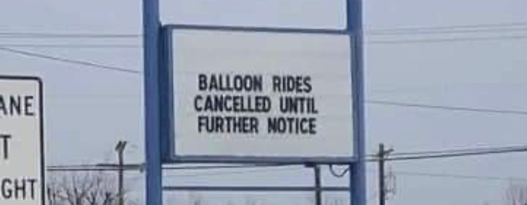But I will admit this: It’s getting downright risky to go ballooning in this country. I cancelled my Valentine’s Day champagne flight.