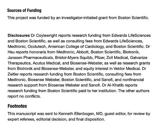 I want first to say how sad this story makes me. Sad because it involves a journal that once had a reputation for accepting strong papers. Sad because many of the authors have had or are destined for leadership positions. And sad because the biased results will be used as marketing propaganda to convince patients to have an unproven procedure.