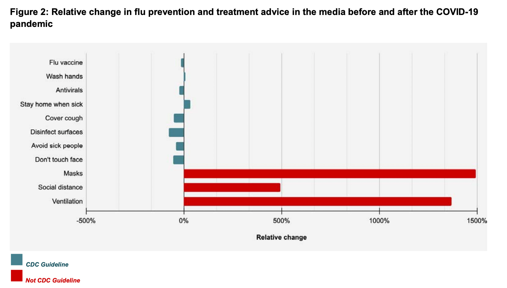 We found a 15-fold increase in the number of articles containing advice to wear a mask to avoid the flu. The number of articles recommending social distancing and improved ventilation also increased significantly, 496% and 1,369% respectively.