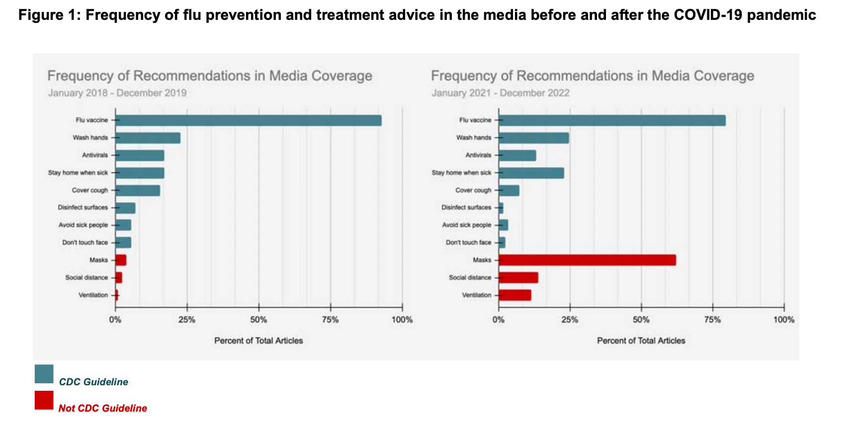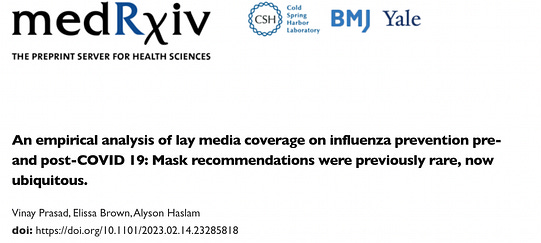 I started by looking at the scientific literature, which showed no changes to the evidence base. The CDC’s official guidelines for flu prevention were almost entirely unchanged from previous years. Specifically, masking was not included. Finally, I looked at mainstream media coverage. It seemed like every news article I clicked on featured physicians and public health experts touting the benefits of masking for flu prevention.