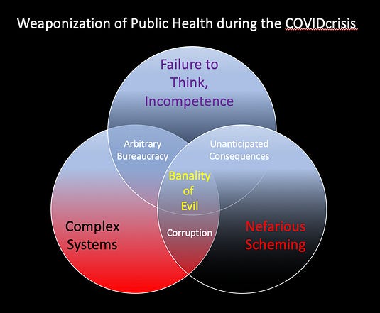 No, what I see is most closely described by Hannah Arendt’s observations regarding the banality of evil. Any who have been paying attention to what has happened over the last three years cannot deny that there is evil in the world, and that we have clearly seen its face revealed during the COVIDcrisis.