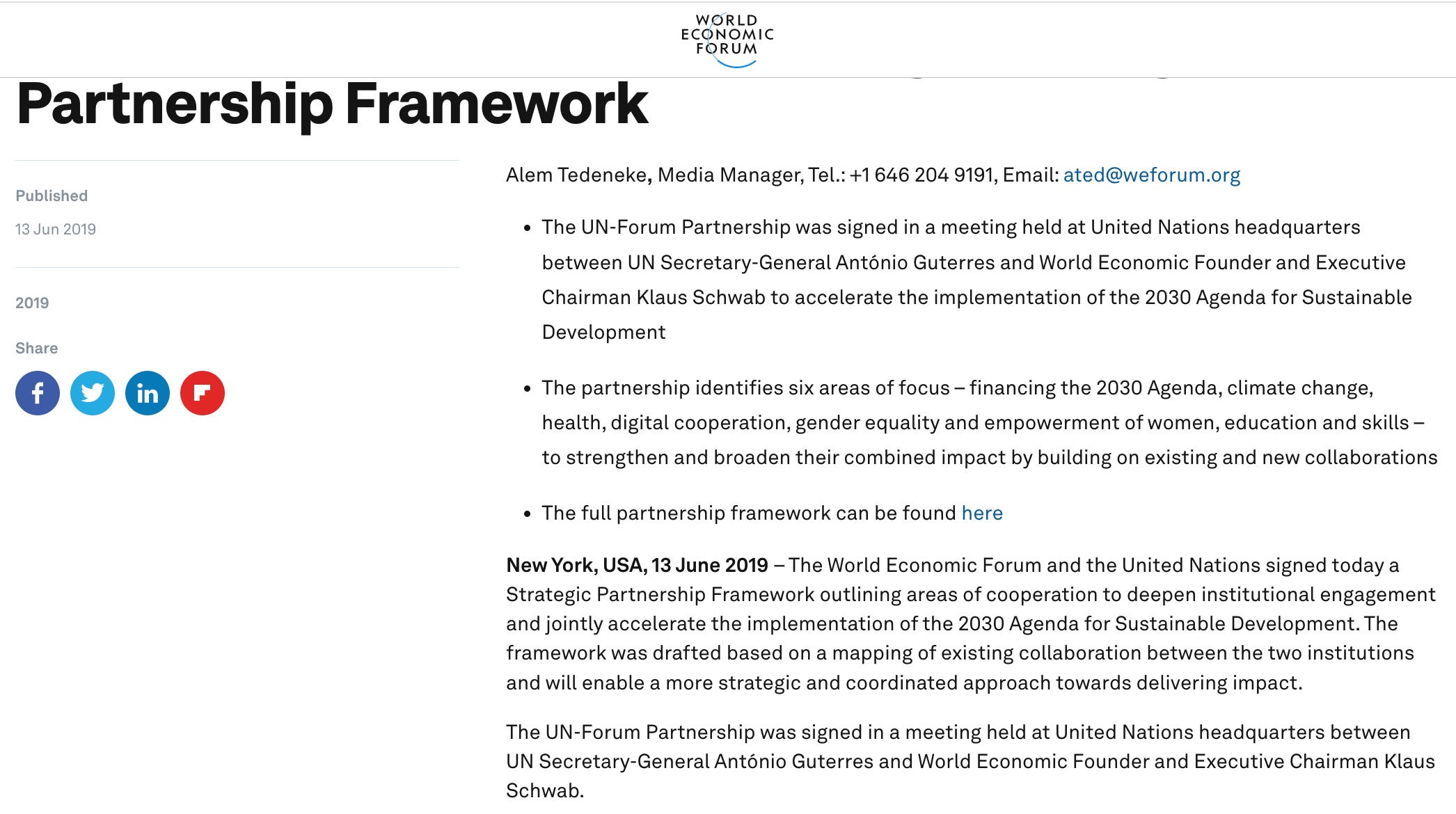 Remember in 2019, when the WEF and the United Nations signed a massive PARTNERSHIP agreement. Now, the power of the WEF is backed up the power of the UN and vice-versa.