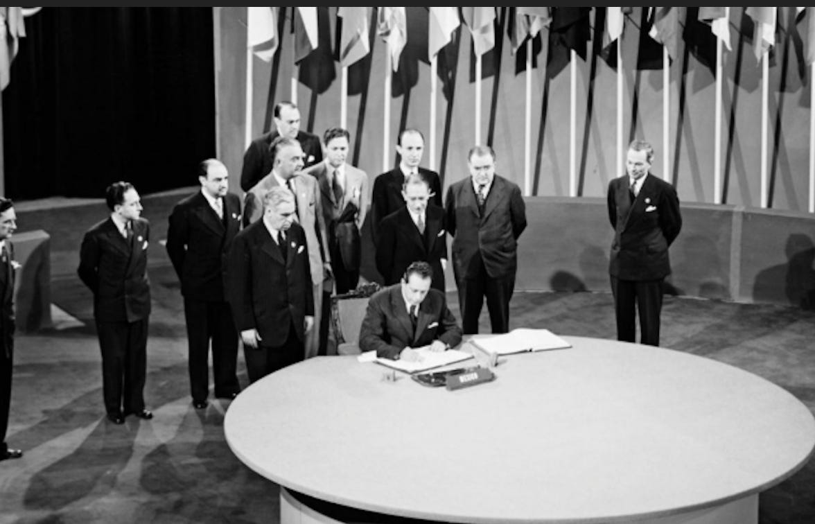 Below is a image of The Original Charter of the United Nations, signed 1945