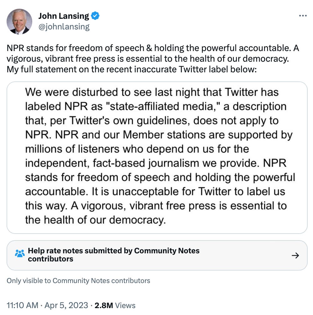 It’s so unfair! NPR’s CEO John Lansing was feeling downright shirty about the whole thing:
