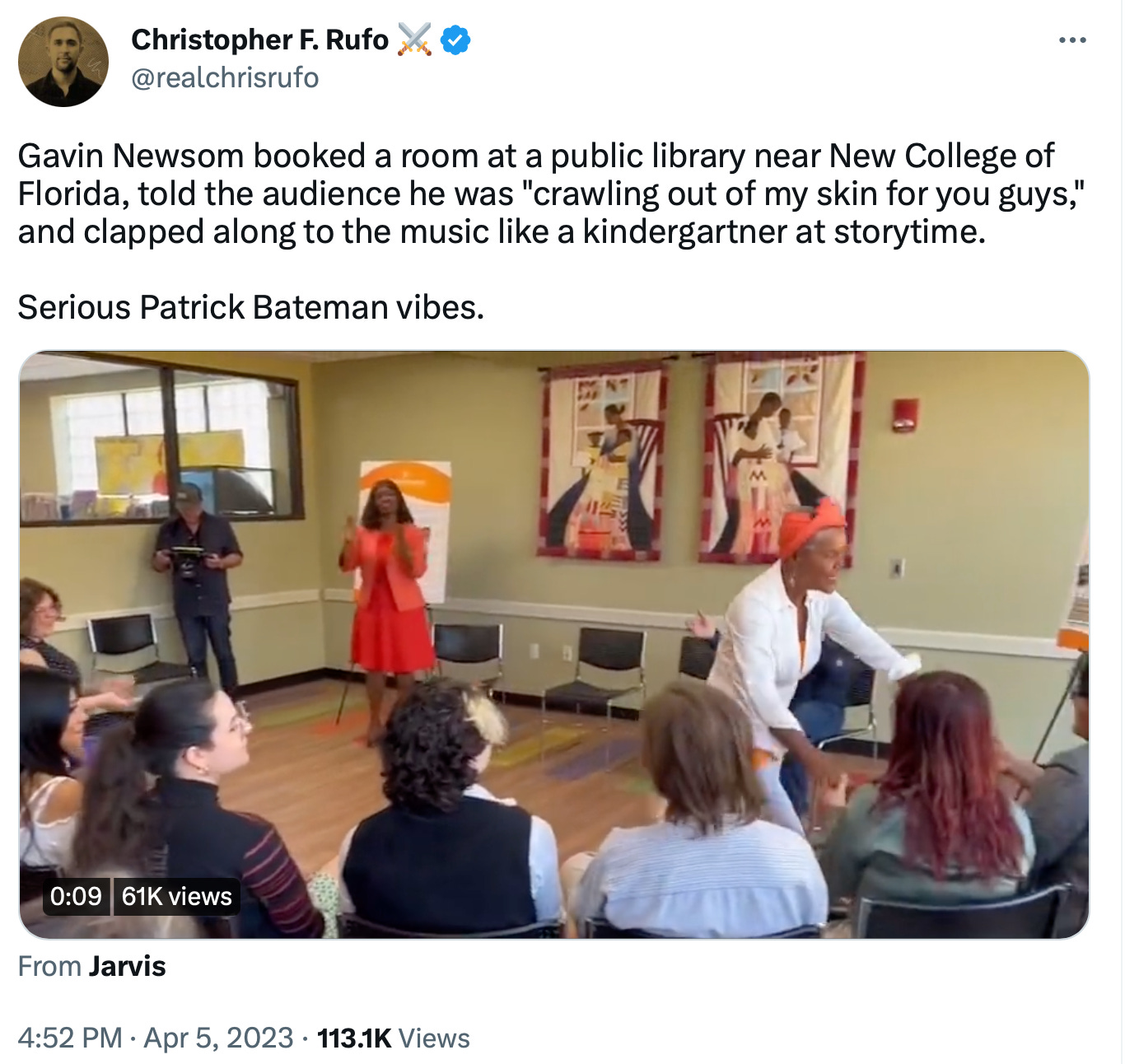 New College is the small, failing, hyper-woke school whose board was recently replaced by Governor DeSantis. But like the Voice of America bringing hope to repressed East Germans, Newsom brought hope yesterday to the tormented liberal students at New College.