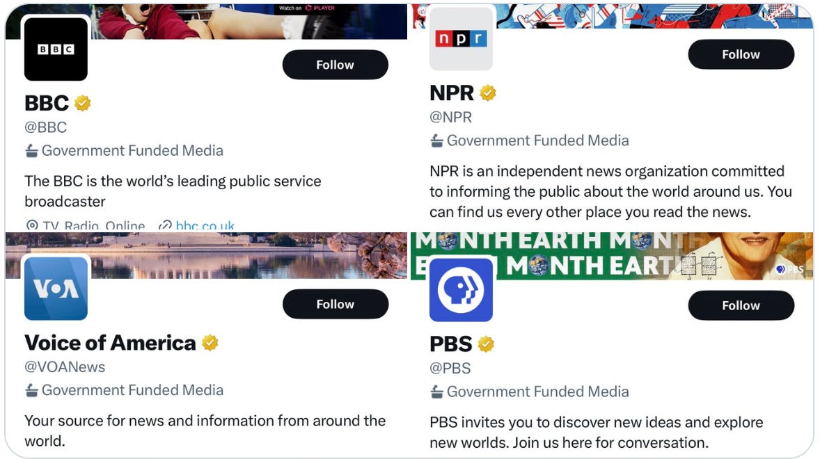 🔥 After NPR threatened to rage-quit Twitter if its new “state affiliated” label wasn’t removed, Twitter changed it to “government funded media.” It also tagged the BBC, Voice of America, and PBS.