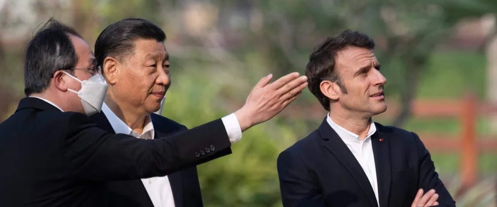 🚀 On Sunday — amidst China’s encirclement exercise, and right after French President Emmanuel Macron and EU President Ursula Von Der Layan visited China to personally meet with President Xi — Politico ran a story headlined, “Europe Must Resist Pressure to Become ‘America’s Followers,’ Says Macron.”