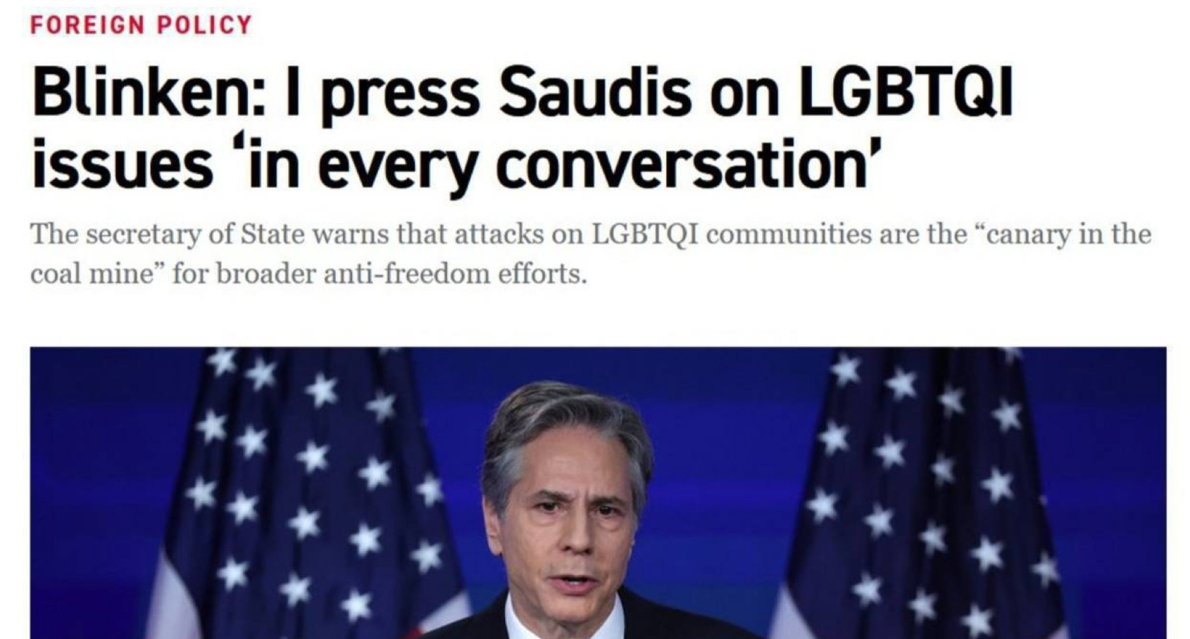 Maybe the Saudis are mad at Biden and think their best bet is hanging with the Chinese and the Russians. But maybe they’re also sick of hearing about Tony Blinken’s perverted atypical sexual preferences that are abhorrent to Muslims and deserve the death penalty under Saudi law: