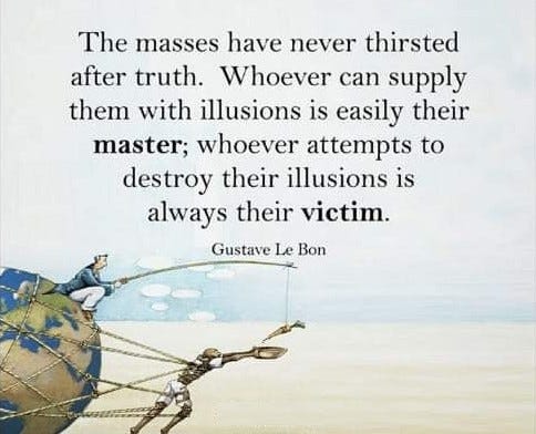 Strangely enough, despite the tidal wave of documents and information demonstrating the tragic failures of public health decision making, the intolerance towards the dissident voices who tried to warn society that the narrative was absurd, didn’t disappear at all. On the contrary, they are targeted more vehemently than ever before. All this is reminiscent of a quote from Gustave Le Bon: “The masses have never thirsted after truth. They turn aside from evidence that is not to their taste, preferring to deify error, if error seduce them. Whoever can supply them with illusions is easily their master; whoever attempts to destroy their illusions is always their victim. An individual in a crowd is a grain of sand amid other grains of sand, which the wind stirs up at will”. (The Crowd: A Study of the Popular Mind (1895))