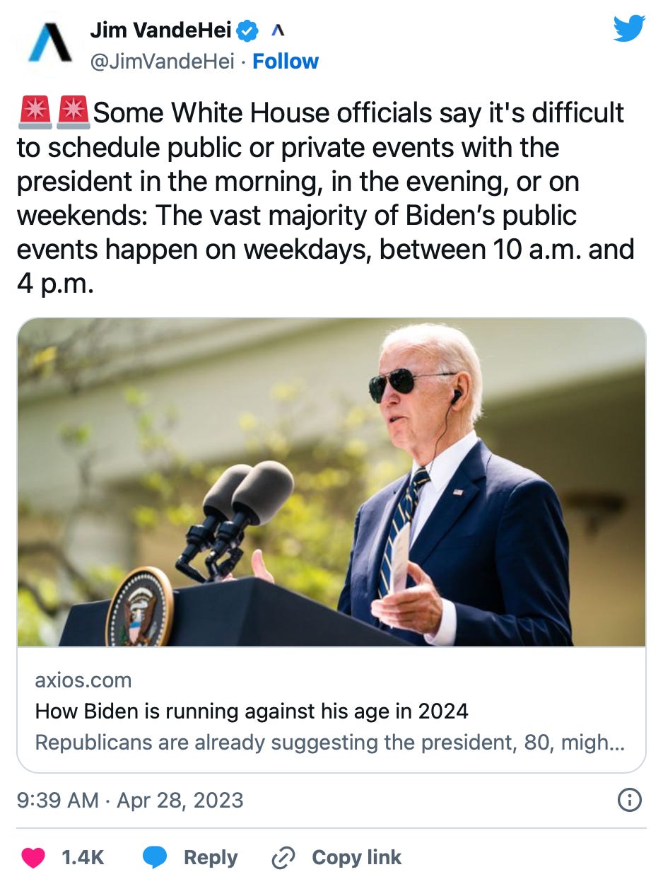 I mean, Biden can only handle so much campaigning and weekday war planning between getting up at 10am and bedtime, I mean 4pm.