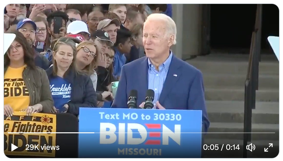 In one clip of a campaigning Biden making the rounds this week, the former vice-president said: