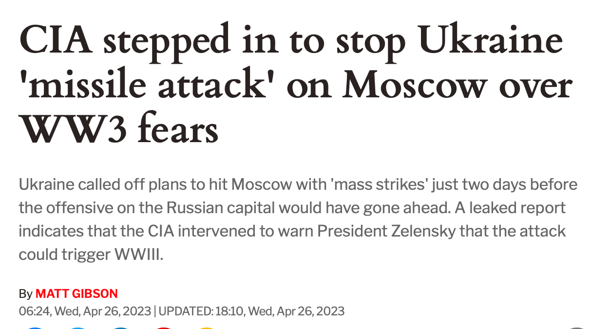 🚀 In extremely hopeful Proxy War news, on Wednesday the UK Express reported that the leaked Minecraft Papers showed the U.S. intervened in late February to prevent a Ukrainian missile attack on the Russian capital, Moscow: