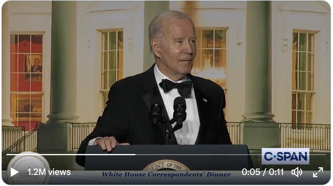 🔥 At last week’s White House Correspondents’ Dinner, Biden hilariously mumbled, “In a lot of ways, this dinner sums up my first two years in office. I’ll talk for ten minutes, take zero questions, and cheerfully walk away.”