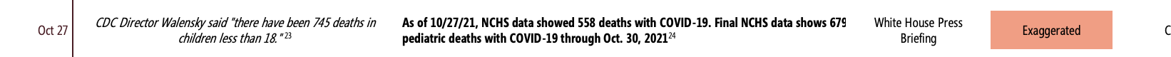 Walensky was inaccurate about the number of kids who had died in a white house briefing