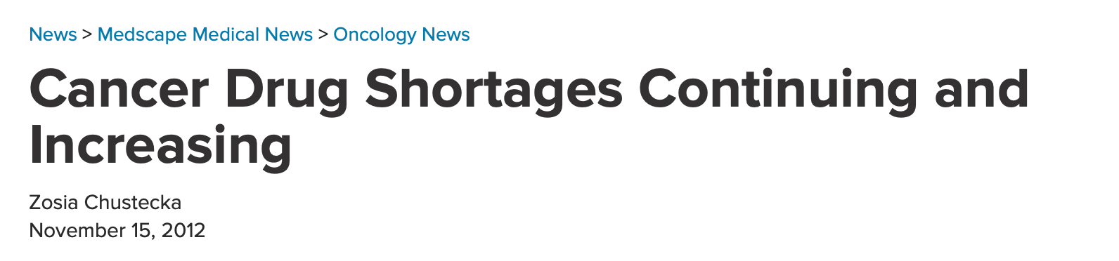 Next, confirming both Dr. Cole and Ethical Skeptic, note the following article that published in MedScape in November 2022 (“Cancer Drug Shortages Continuing and Increasing”):