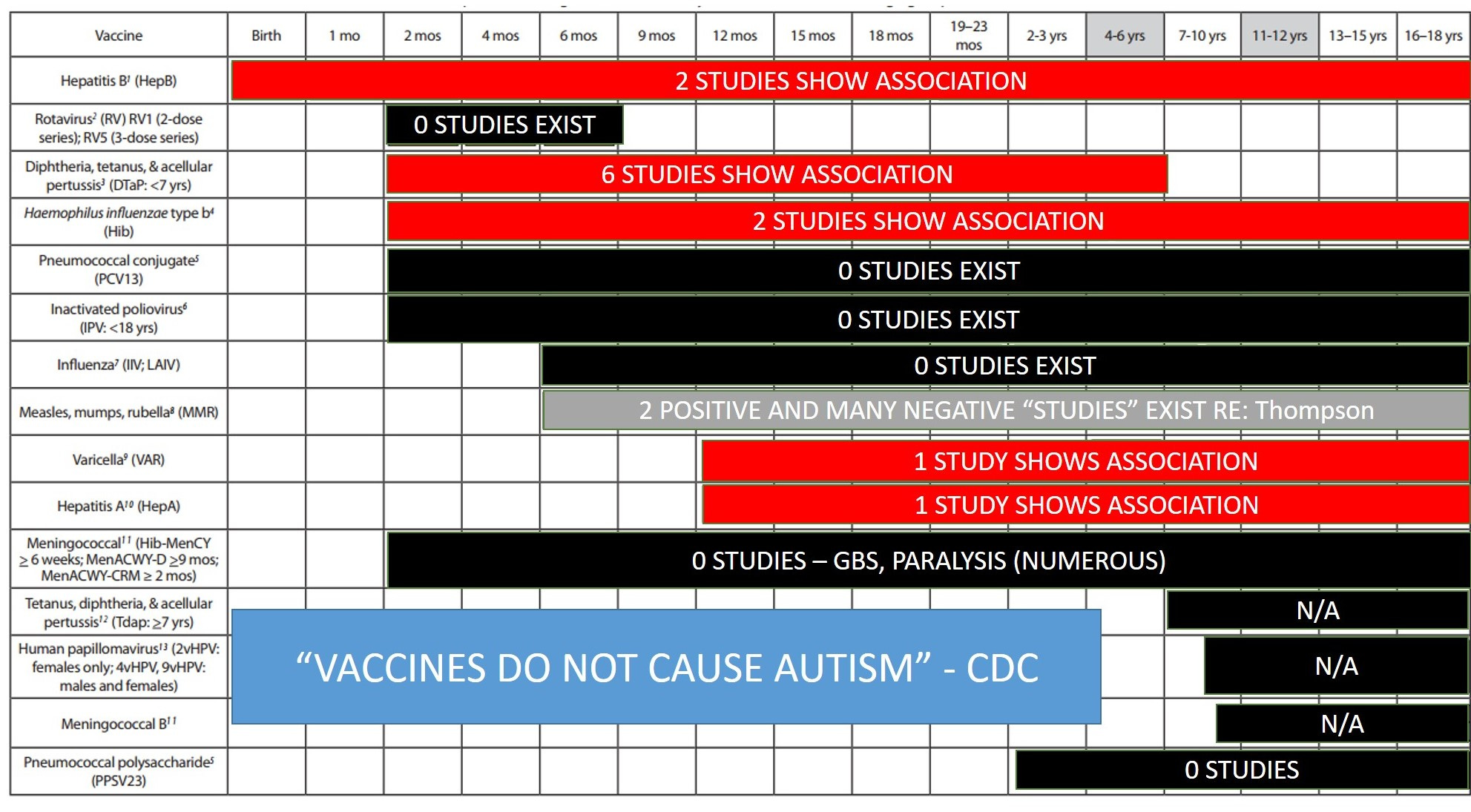 After a presentation at Life University in 2015, other organizations followed my lead. Del Bigtree and his team at ICANDECIDE.org scoured the literature, too, and in finding that some vaccines had never been studied even for association with autism, sued the CDC. They even won a stipulation that led to the CDC temporarily changing their website from “Vaccines Do Not Cause Autism”.