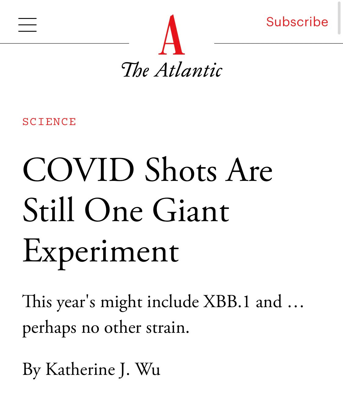 Now, I know how excited you must feel reading that, but calm down, it’s not quite what it looks like. The point they were trying to make was that big pharma can’t decide which covid strain to use for its next booster formulation, they’re just guessing, like with flu shots. Still, you can’t beat that headline. They could have said “The NEW Covid Shots Are A Giant Experiment.” Including the word “still” sure looks like a Freudian slip, a dead giveaway, that the original shots were one giant experiment too.