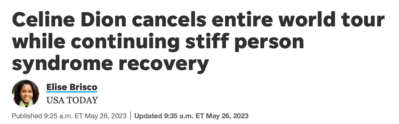 💉 Celine Dion, 55, has now cancelled her entire world tour after announcing stiff person syndrome, a neurological disease, which we’ve discussed here before.