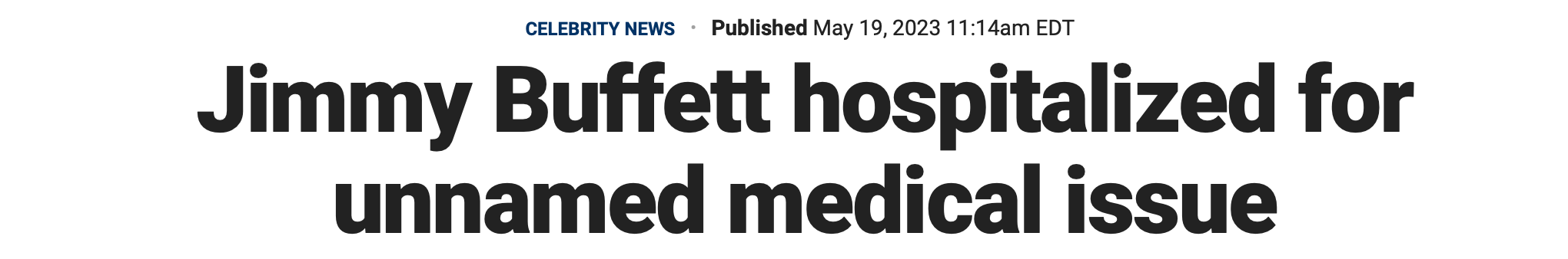 💉 Jimmy Buffet, 76, was hospitalized with all pending concerts postponed, for an unidentified medical issue requiring “immediate attention.”