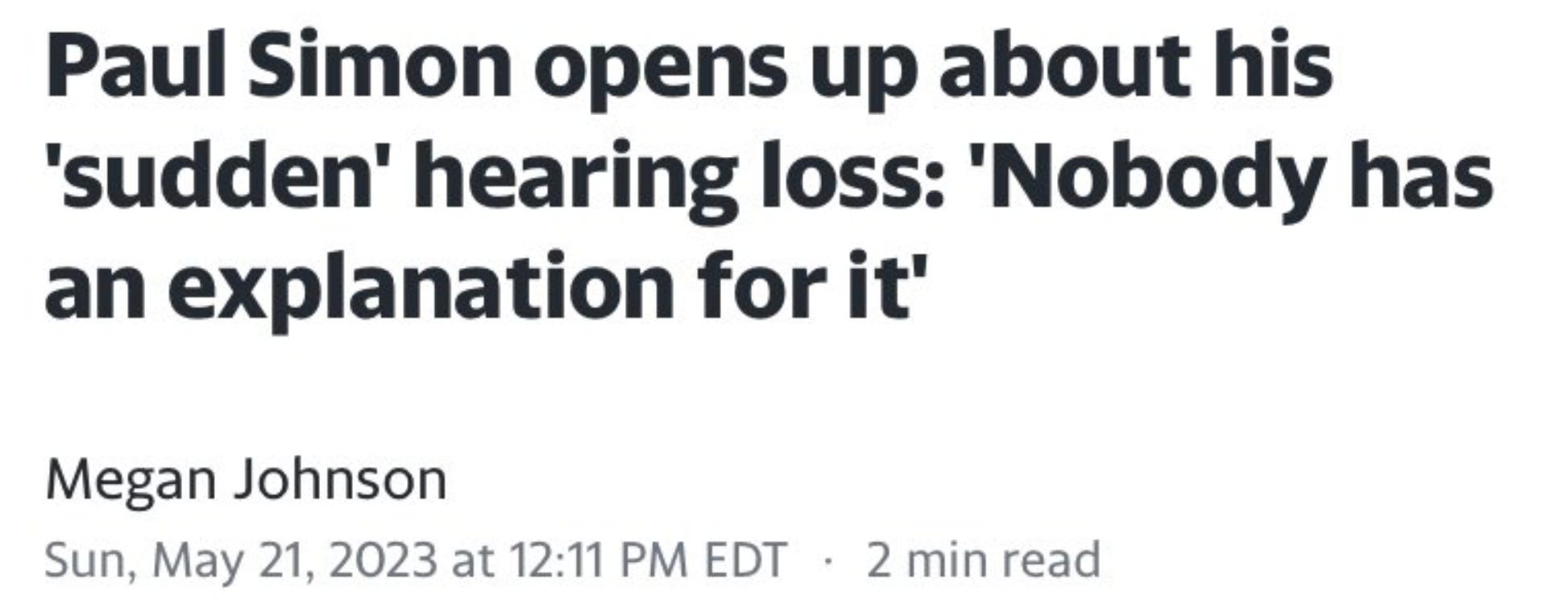 💉 Prolific performer and songwriter Paul Simon, 81, announced being suddenly and unexpectedly struck deaf in his left ear, preventing him from giving any more live performances. Coincidentally, there are over 400 similar cases described in VAERS.