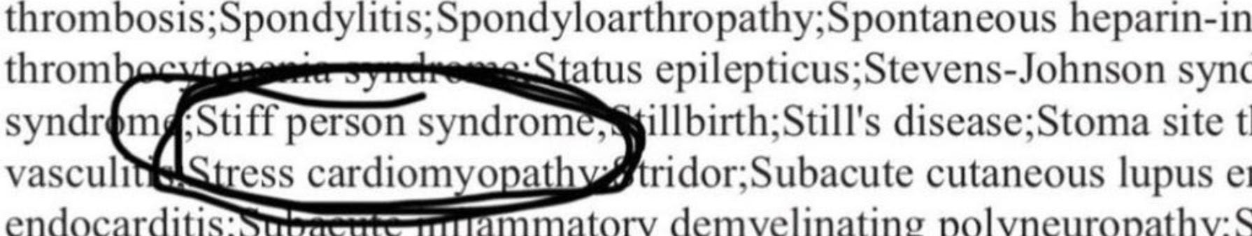 Corporate media has recently begun claiming there’s no link between the jabs and SPS. But stiff person syndrome was included in Pfizer’s original list of side effect of special interest: