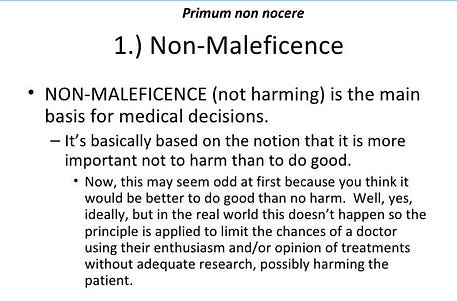 Just to recalibrate and recap. Here are screenshots from a few (of many) slides included in a 2014 medical ethics course taught at Johns Hopkins University Medical School: