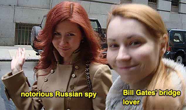 But the Daily Mail surfaced photos from around the same time as the affair, which show bridge prodigy and Bill Gates temptress Mila Antonova frolicking with notorious Russian sex spy Anna Chapman (maiden name Anna Vasil’yevna Kushchyenko).