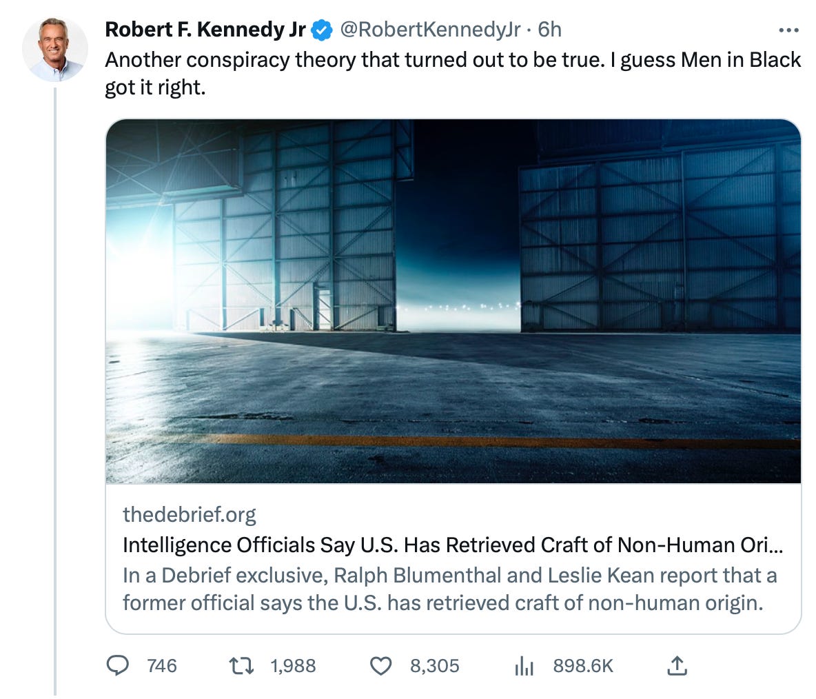 👽 Speaking of opening Overton Garage Doors, nearly a million people have already seen this recent RFK post: