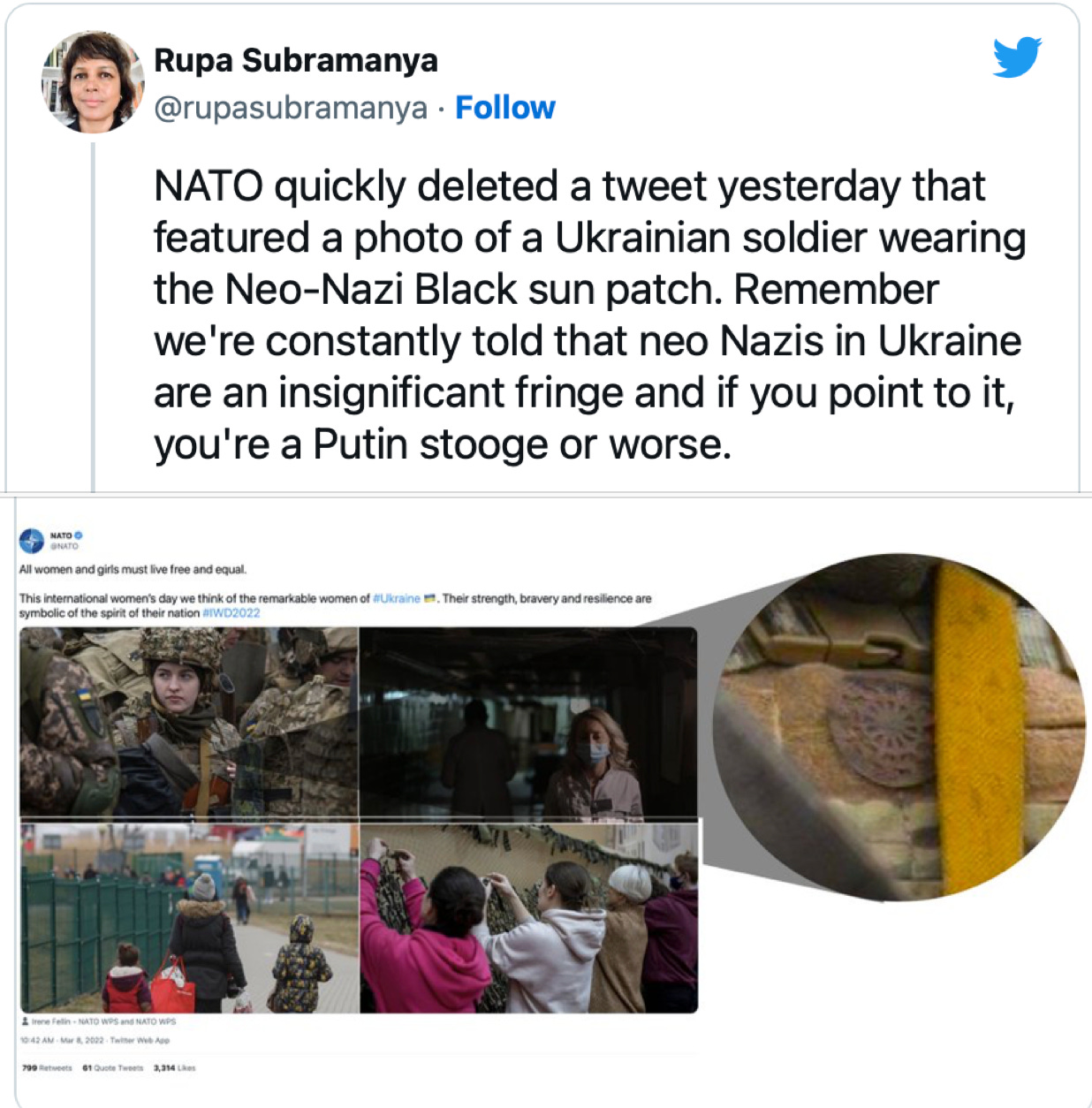 When there’s a proxy war on, the captured media becomes more … flexible. And understanding. Not to mention open-minded. The Times generously found that explicit Ukrainian Nazi imagery isn’t automatically hate speech, not necessarily, not really, not like when a Republican stage is loosely shaped like a swastika when you look at it from the right angle: