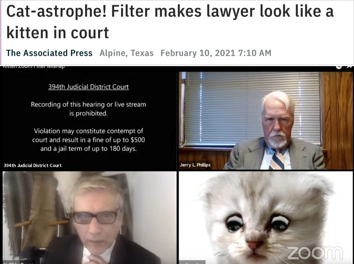 🔥 The cat-filter lawyer’s fifteen minutes of fame is up. There’s a new champion in town, competing for dumbest lawyer on the planet.