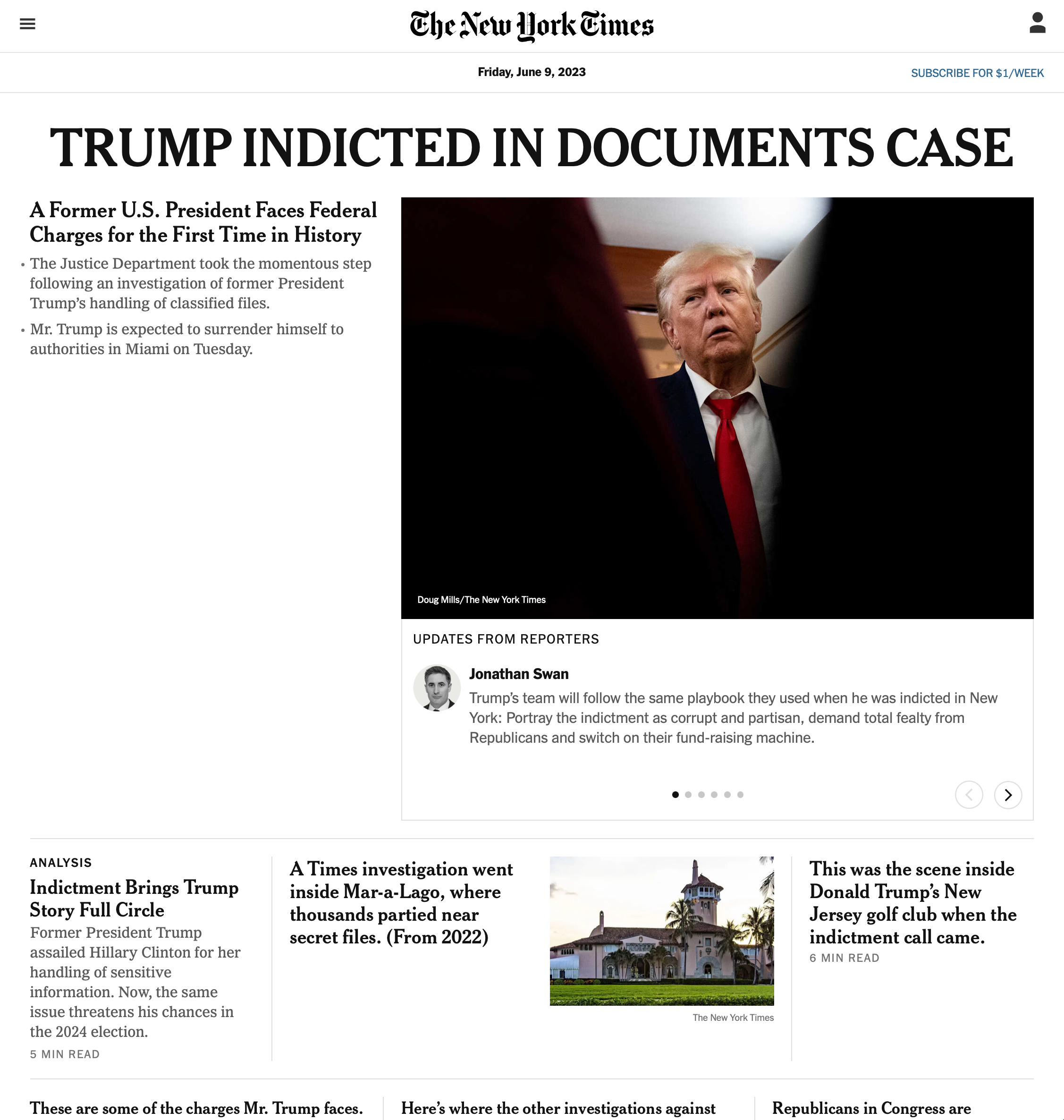 The Times’ gives the barest nod to the issue in a triumphant story headlined, “A Former U.S. President Faces Federal Charges For The First Time in History.” But even that story never grappled with how unprecedented any of this is. It just moved right into the political implications and whether MAGA would continue to support Trump “anyway,” as if these politically-motivated prosecutions would do anything but inflame Republican outrage and harden their resolve.