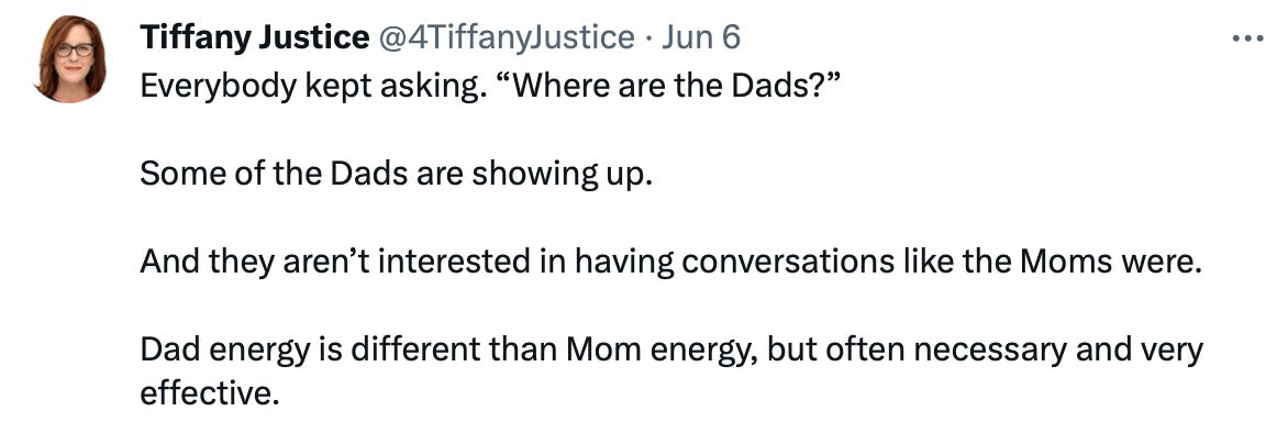 Mom’s For Liberty founder Tiffany Justice accurately observed the Muslim parents in California were exhibiting “Dad energy:”