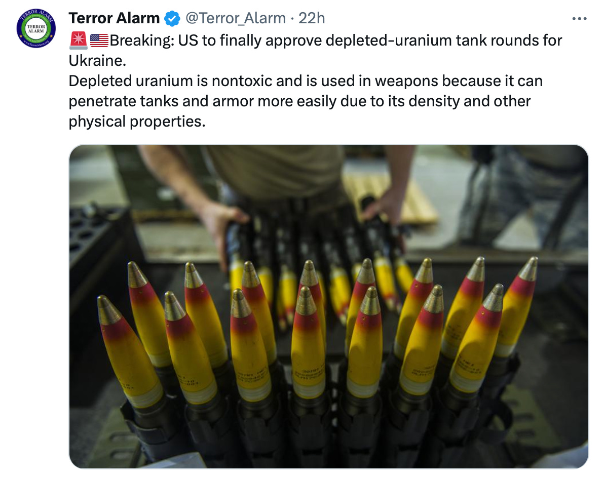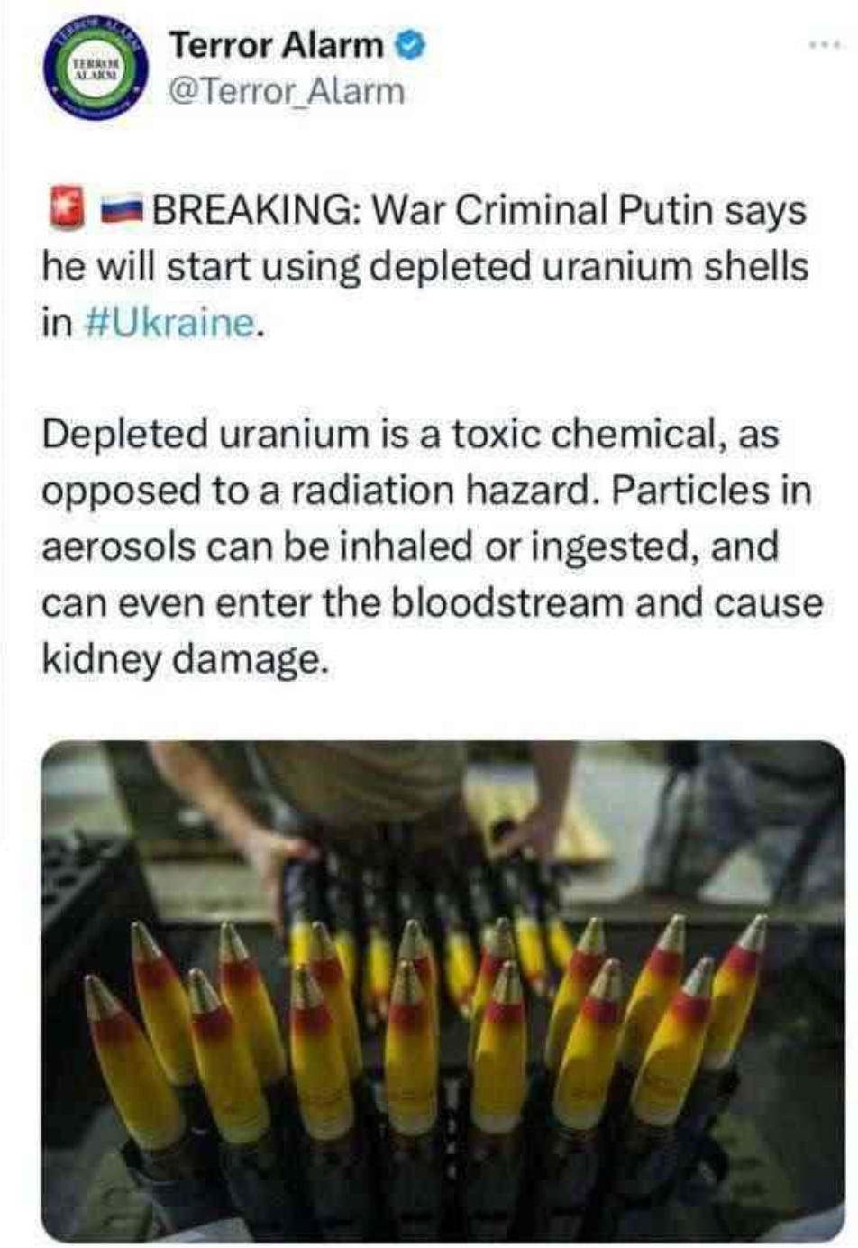 🚀 Here’s how the Ukraine propaganda works. When the Russians threatened to use depleted uranium shells last year, this “warblogger” decried Putin as a war criminal for even thinking about it: