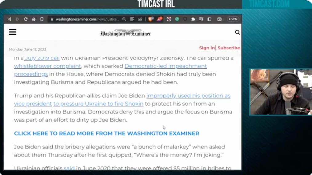 🔥 Yesterday, social media influencer Tim Pool used his main TimCast IRL channel to explore the Biden Bribery document story, the FBI’s obvious coverup, and their many implications. The dialogue between the host and his co-hosts was interesting, informative, and ultimately surprising. It’s worth noting that Pool is not exactly a hardened conservative, he’s usually labeled center-right or independent, but he finds the Biden Bribery document story to be extremely troubling.