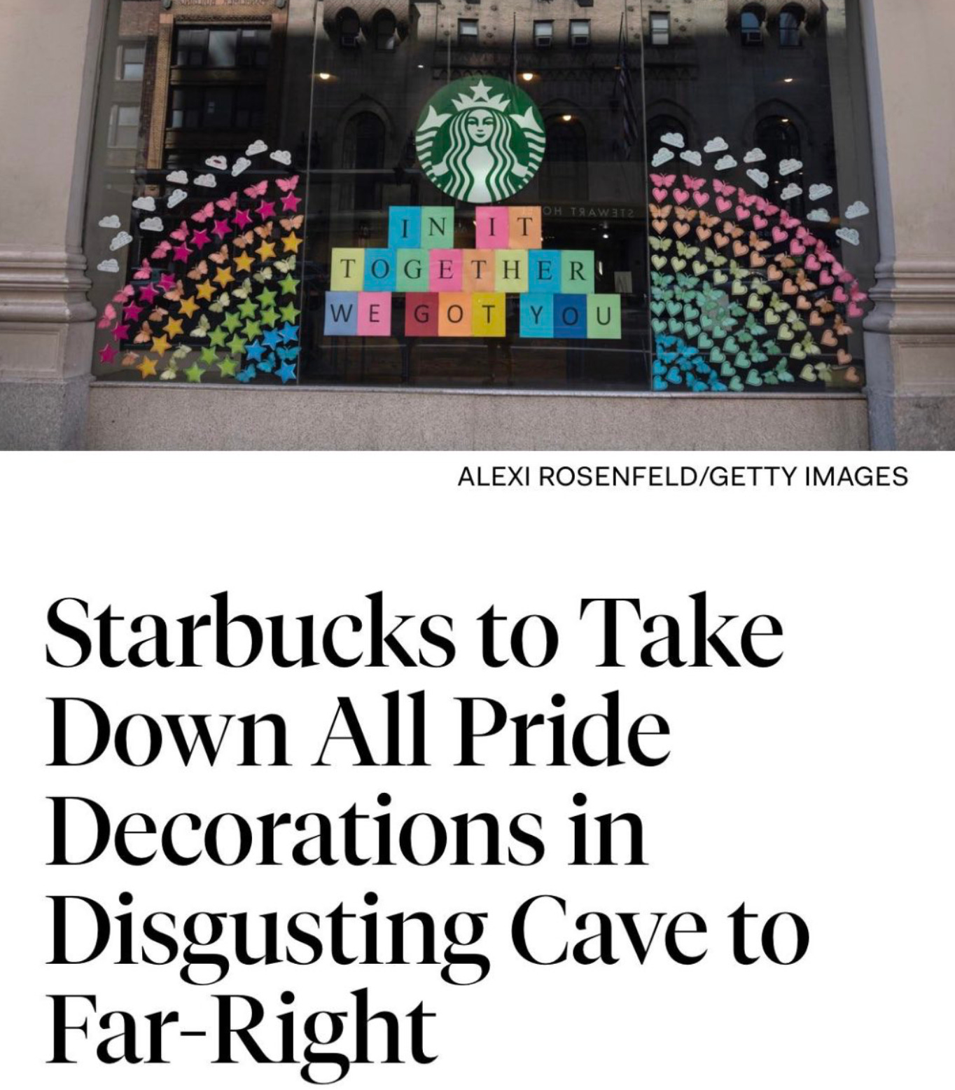 The article, which is an insane rant disguised as a news piece, complained among other things that Starbucks management didn’t ask employees how THEY felt about the reverse in Pride policy. Which just proves that Politico reporters cannot understand basic economics or corporate structures.