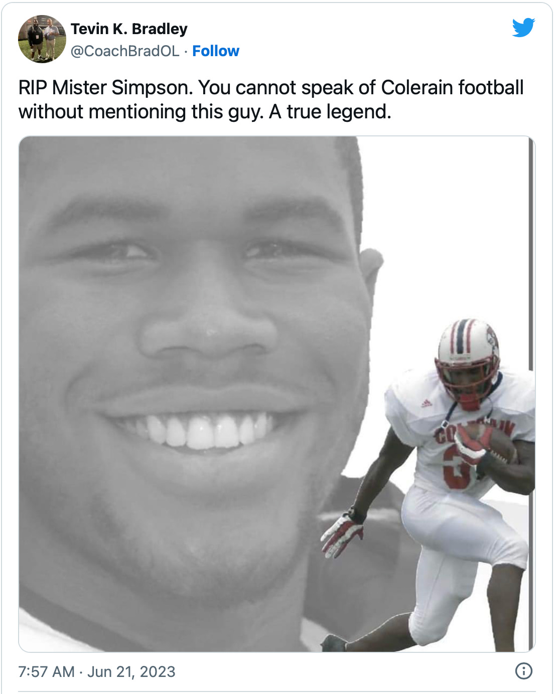 Oddly, Simpson’s cause of death was only listed as “pending” on the coroner’s report, which identified the reporting agency as Cincinnati Police District 5. Cincinnati CityBeat reported the police department did not respond to its request for the cause of death.