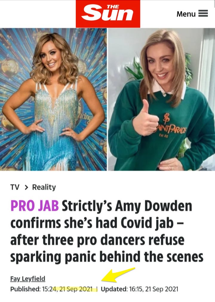 💉 Some good news for a change. The BBC ran a story last week headlined, “Strictly’s Amy Dowden More Positive After Cancer Surgery.”