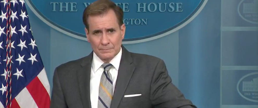 Anyway, yesterday reporters also asked Baghdad Bob, I mean State Department propagandist John Kirby, about Hunter’s WhatsApp shakedown text messages. Kirby refused to comment, and threatened to walk out if reporters kept on asking him about it. And when reporters did keep asking, Kirby did walk out. He’s not used to having to answer unscripted questions.