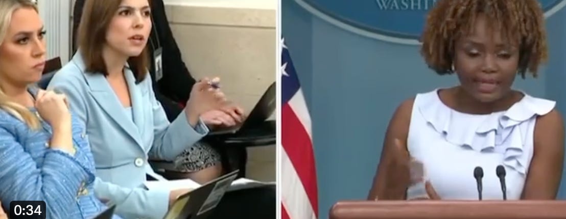 JEAN-PIERRE: “This is not a conversation that I’ve had with the [Biden]. Again, I would refer you to the White House counsel.”