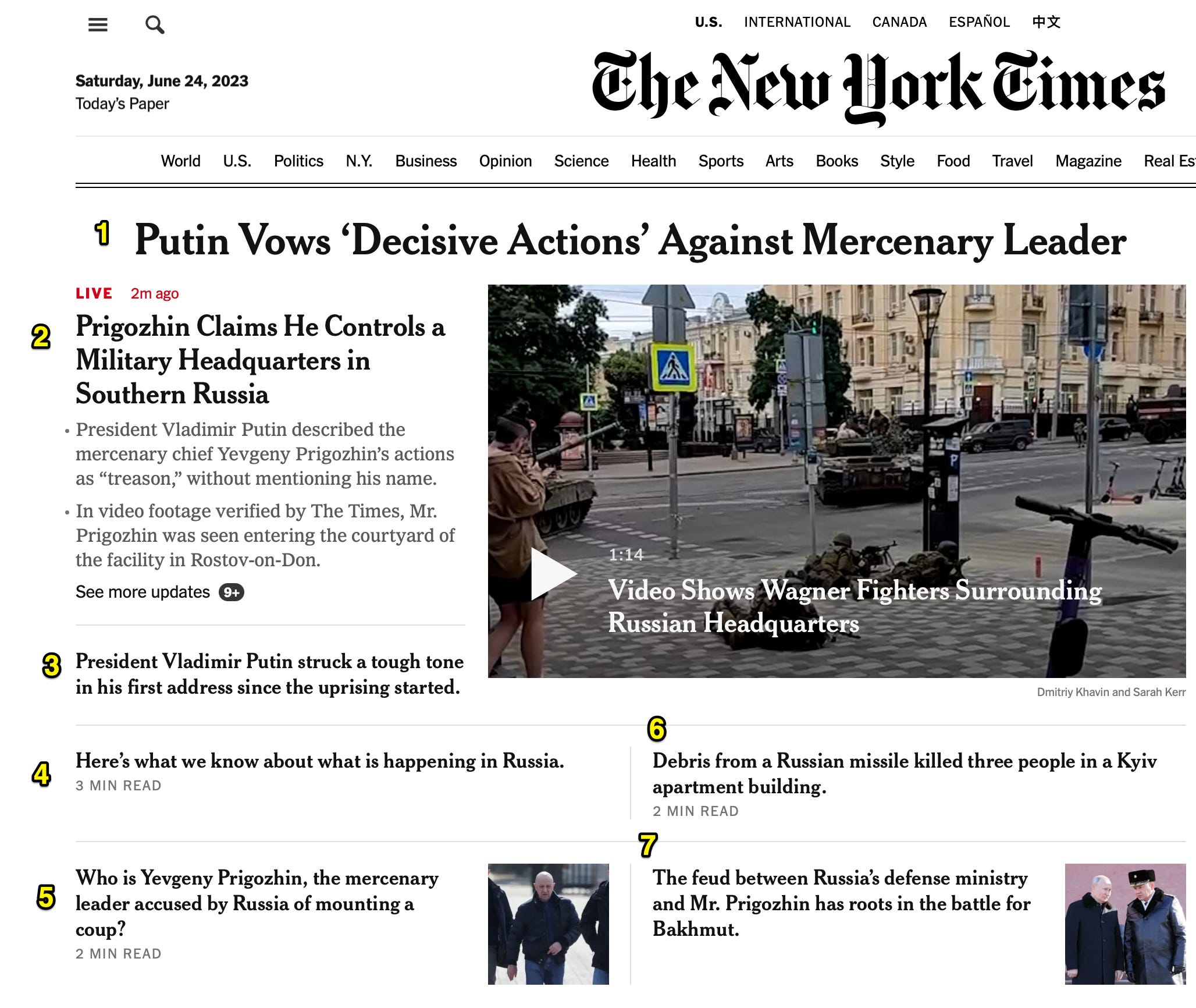 The Wall Street Journal’s was the LEAST inflammatory headline. Headlines from other corporate media outlets were much more excited, calling what’s happening in Russia a “coup” and suggesting Putin may have already been arrested (again).