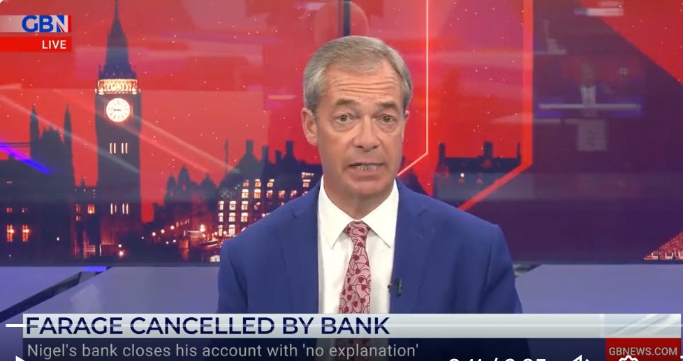 🔥 Stupendous British conservative Nigel Farage, who led the Brexit movement, says he has been de-banked and may now have to leave England, where he’s lived his entire life.