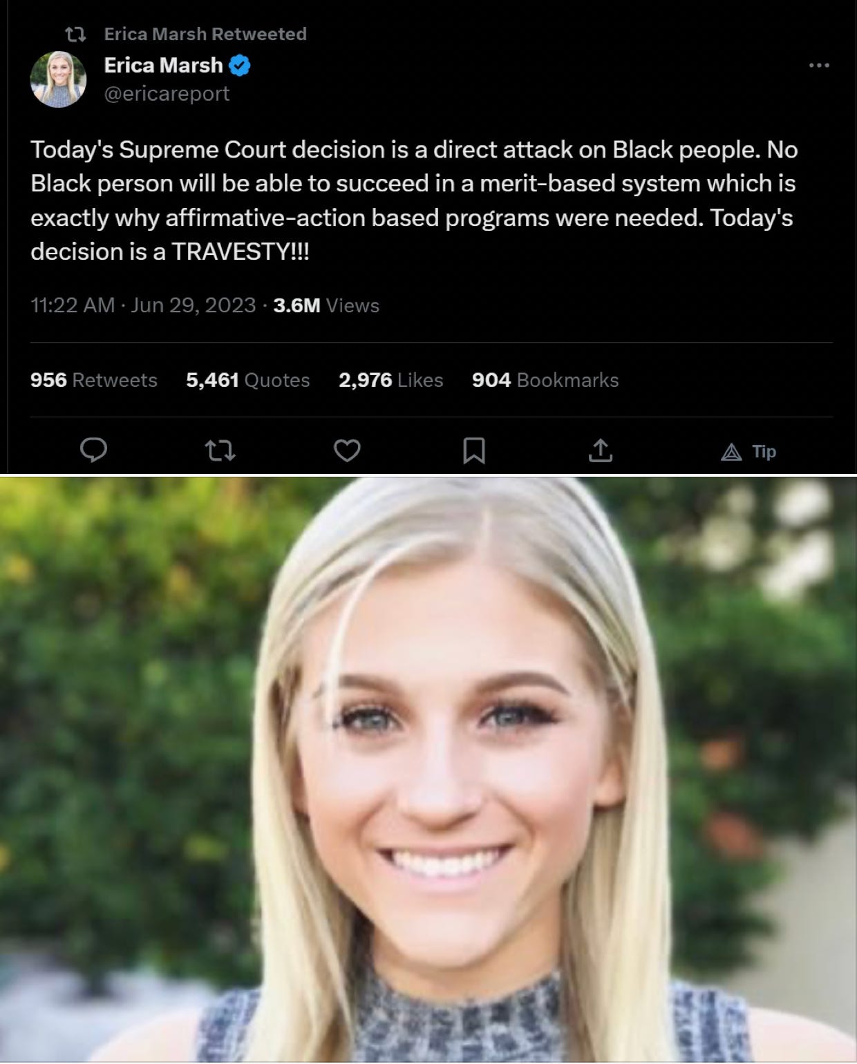 👨⚖️ Another terrific, generation-changing, 6-3 Supreme Court decision issued yesterday. The Post Millennial ran the story yesterday headlined, “Supreme Court Rules That Affirmative Action In College Admissions Is Unconstitutional.”