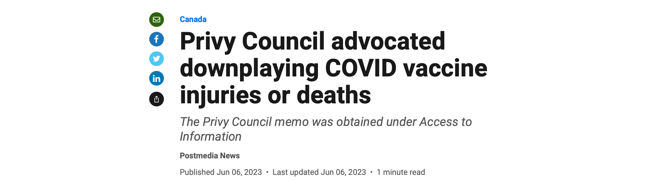 💉 The Toronto Sun ran a shockingly candid article last month that will not surprise you one bit — except, that is, for the fact they actually ran the story — headlined “Privy Council Advocated Downplaying Covid Vaccine Injuries Or Deaths.”