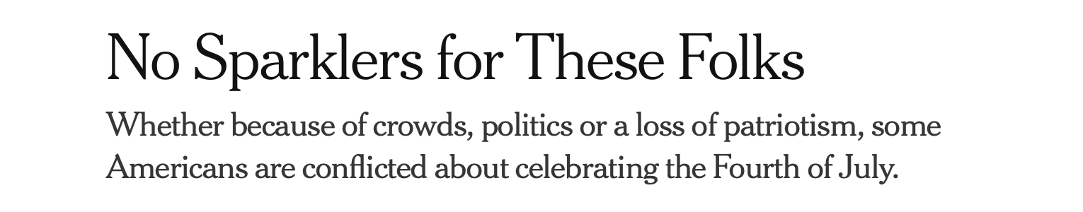🇺🇸 But first, let’s deal with the unpatriotic elephant in the room. We’re all sensing it. The New York Times featured this cheerful 4th-of-July story on its home page yesterday: