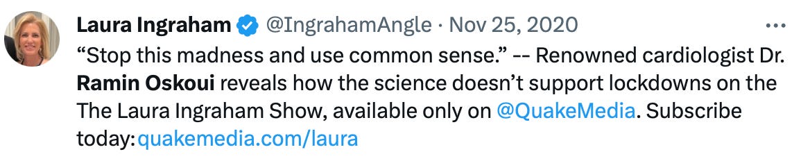 Tragically, Dr. Oskoui was an outspoken critic of mask and lockdown policies: