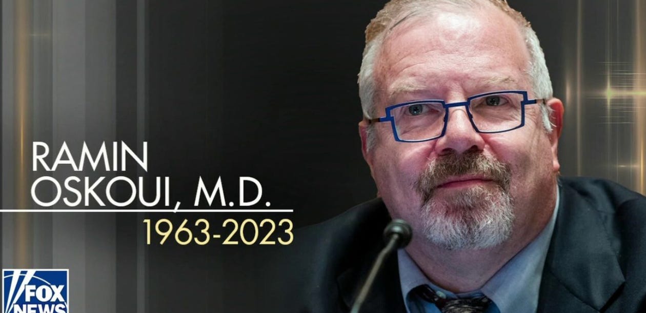 💉 Another cardiologist! Washington D.C. heart doc Dr. Ramin Oskoui, 60, who was named Physician of the Year by Johns Hopkins Medicine Clinical Awards in 2015, died suddenly and unexpectedly on May 5th DURING CARDIOLOGY ROUNDS.