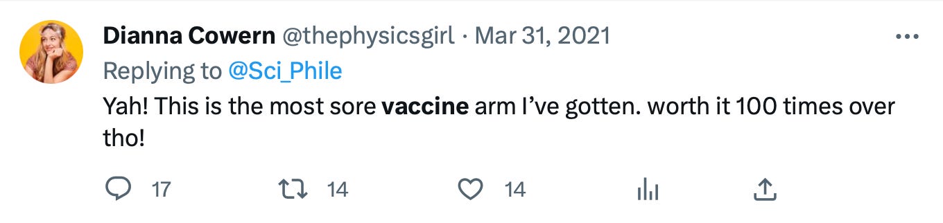 💉 YouTube star and frequent jab advocate “The Physics Girl” Dianna Cowern is suffering from months of deteriorating health, to the point she is now entirely disabled. She blames her condition on long covid, not long vaxx, despite having gotten the safe and effective shots, which were neither effective to protect her from viral or vaccinal injury.