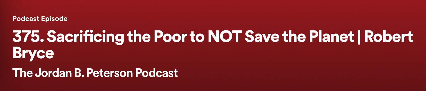 Dr. Jordan B. Peterson and Robert Bryce discuss the topics from his latest book, “A Question of Power: Electricity and the Wealth of Nations,” the current audacity of the zero-emissions agenda, its effects on the developing world, the feasibility of coal and nuclear power, the catastrophic problems related to wind and solar power, and the positive vision for the future we can all share, should our institutions finally drop the doomsday narrative.