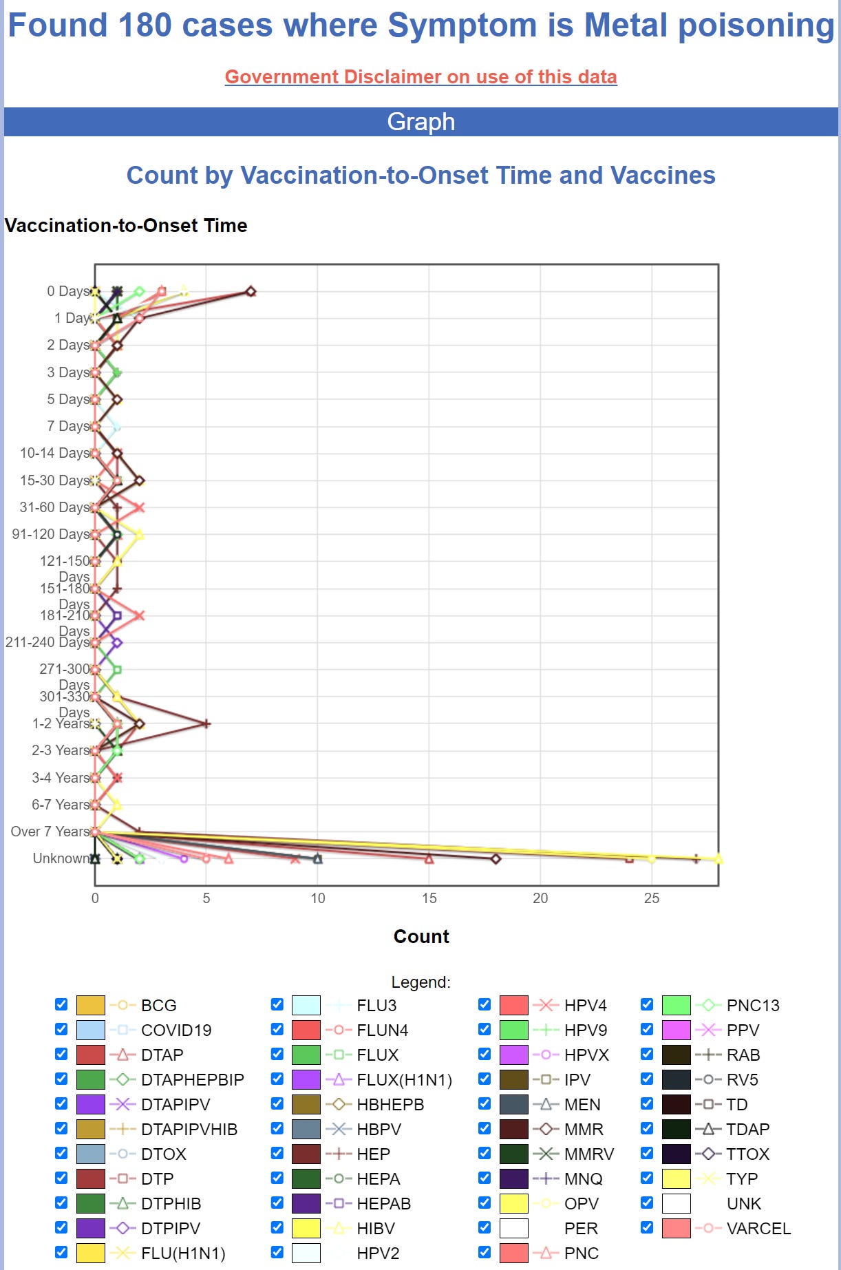 For the metal poisoning adverse event, the COVID vaccines don’t register. It’s one of the few adverse events you don’t have to worry about if you get a COVID vaccine.