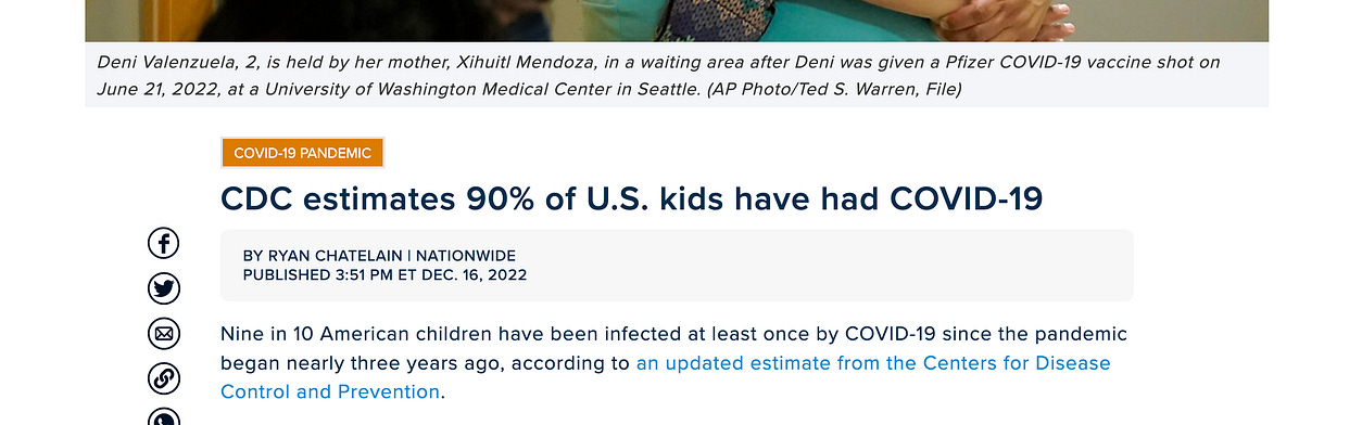 Let me be clear. The only reason anyone ever masked a child was because adults were suffering from cognitive rot. There was and is no evidence to justify masking kids, particularly very young kids. There is no study that shows child-masks adhere to the n95 standard for particle filtration. Finally, most kids in America have already had COVID. Shielding a health child from respiratory viruses is prima facie, unsound. 100% of kids will get COVID merely by living on planet earth. It is natural and inevitable that this happens, if the live long enough. Shielding a child that had covid is beyond silly.